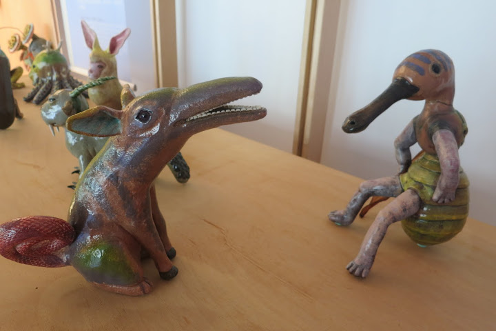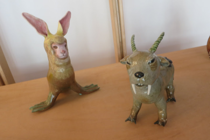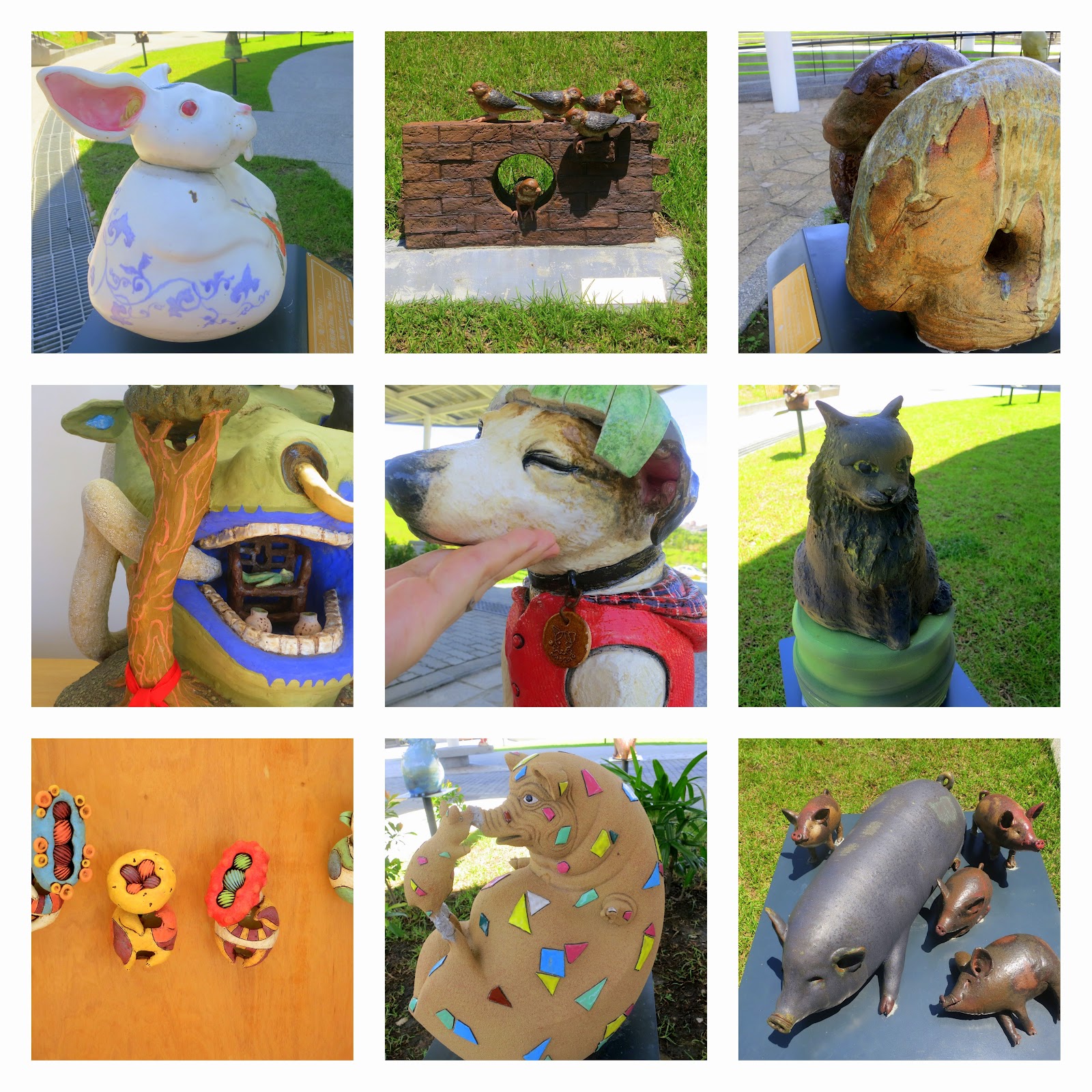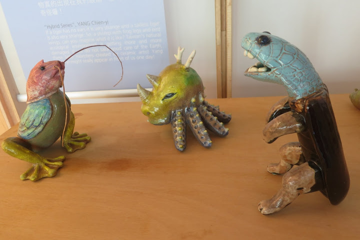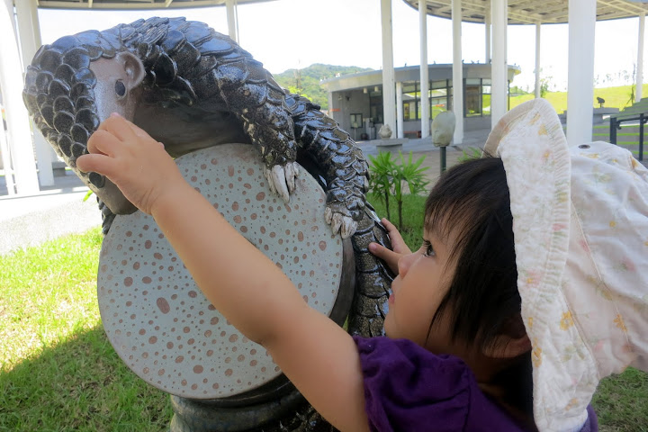 女兒很興奮地去摸那些可愛的陶瓷動物,