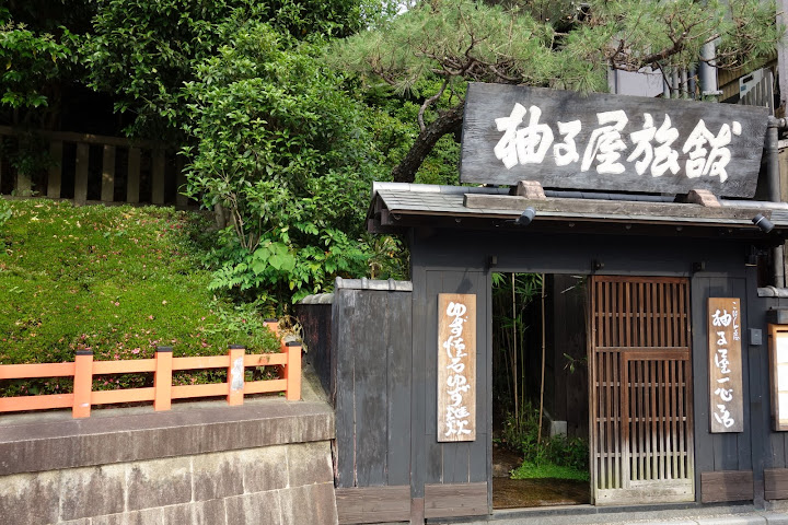 八坂神社旁的柚子屋旅館。本來有考慮要試試看住這間,後來想說來吃吃看他的晚餐就好了,感覺上是還好沒有住這裡,從大門到門口有好多樓梯,帶著行李就很不方便。 :P。這天預訂了晚餐的柚子鍋。到達的時間距離訂位時間還早,所以先去附近晃晃。