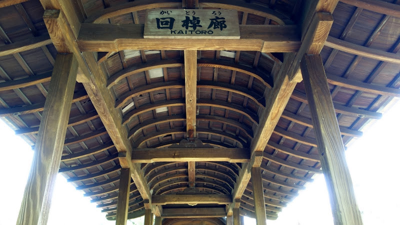 是有屋頂的橋。橋的屋簷下寫著回棹廊