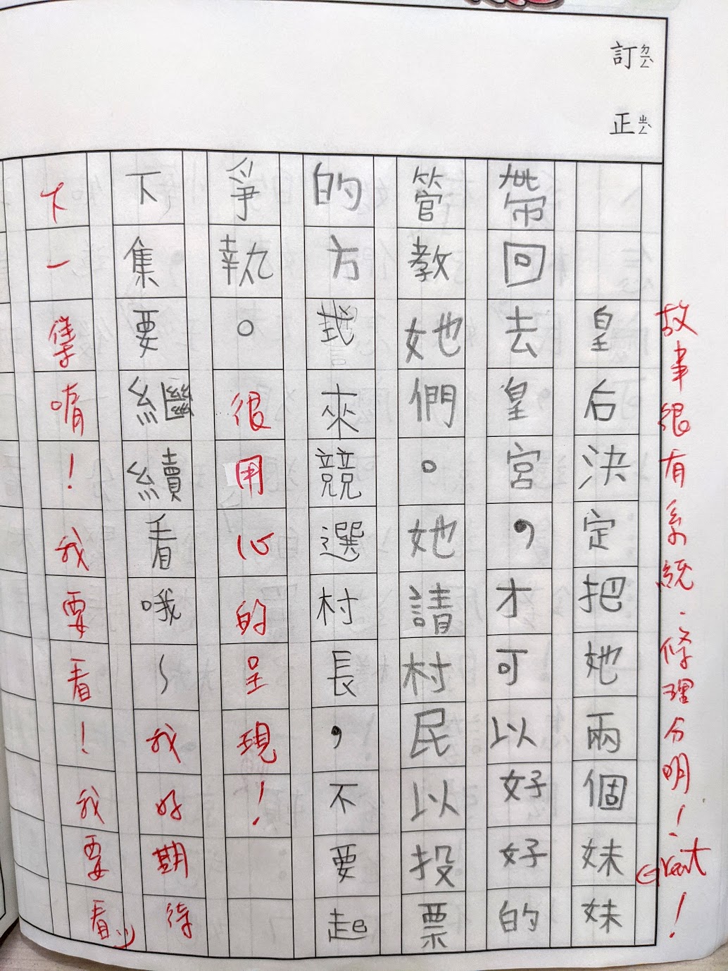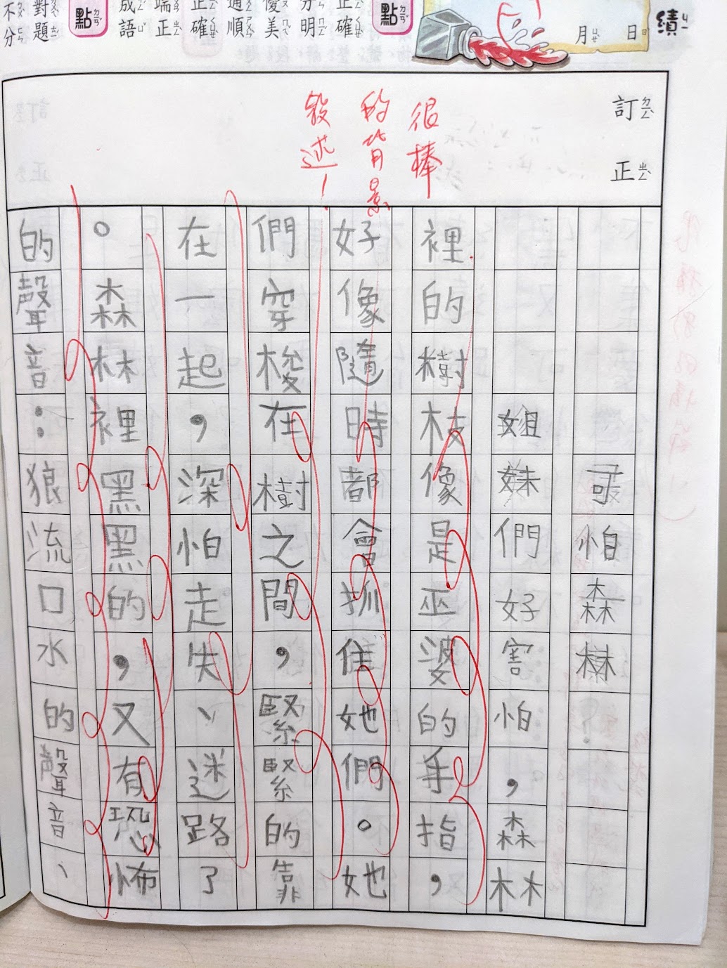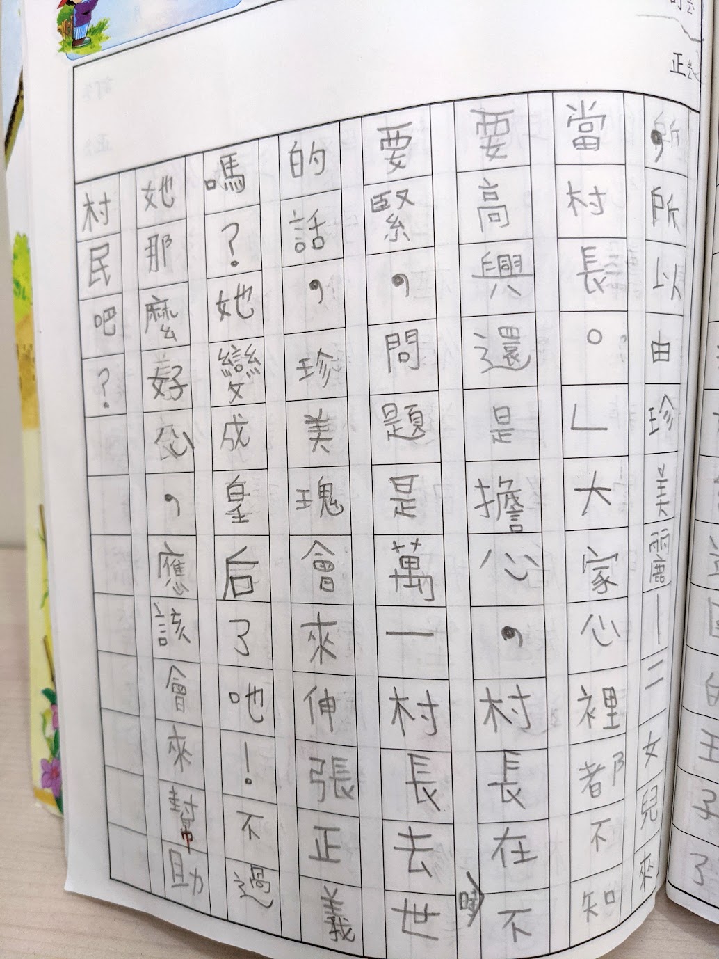 作文簿被她收在學校的櫃子裡沒辦法拍,只能等她之後帶回來再補拍。
