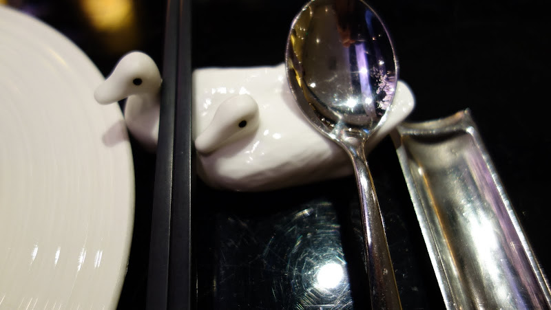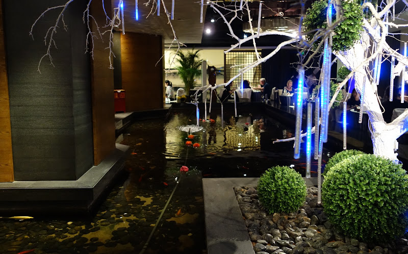 我們坐在水池右邊的座位,水池左邊剛好是師傅在烤鴨的地方,做成開放式的。