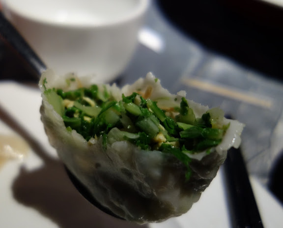 芫荽爆鴨腸。很好吃,可是偏鹹。