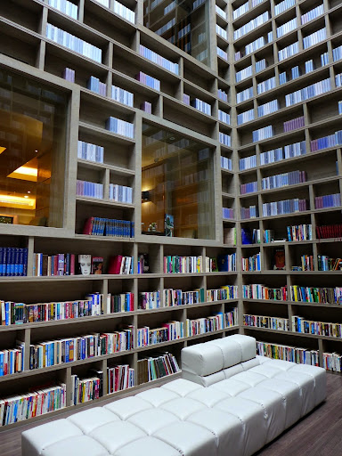 之前看到雜誌上的照片,一時之間腦充血就跑去了 XD 這個大廳的設計的確是讓人眼睛一亮。還有個好聽的名字” 光陰部落藏書閣”