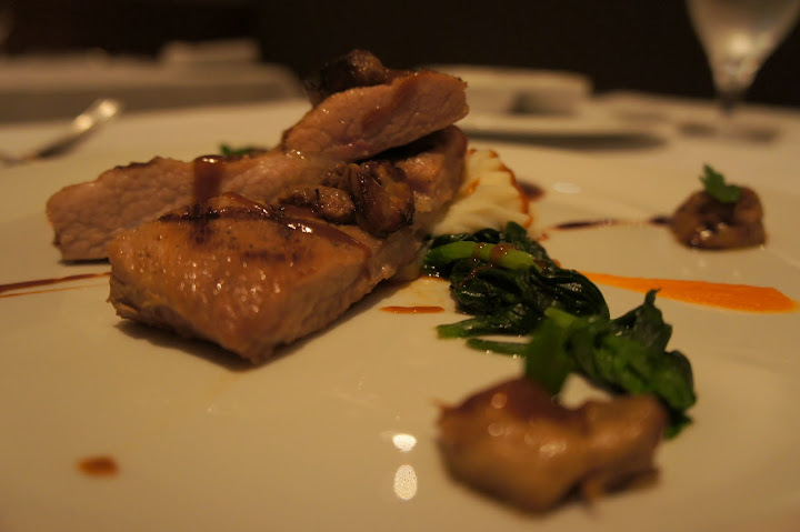 主菜: 香草豬 佐 香煎鵝肝丁,豬肉本身只有2.8顆星,但香煎鵝肝丁蠻好吃,有3.8顆星