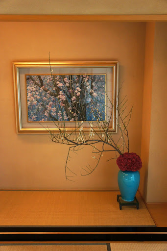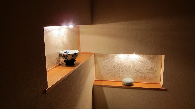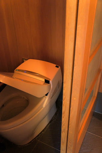 盥洗設備的設計中規中矩,淋浴的空間差強人意,因為房間的主要的重頭戲: 湯池是在落地窗外,所以淋浴間就將就一點吧。可以自由取用的mini bar小點心和冰箱裡的飲料還ok (不過沒有酒:P)。房間裡有可以給客人泡茶的側柄茶壺和茶杯,這兩樣倒是很漂亮,小小的東西卻讓整體感覺大大加分。
