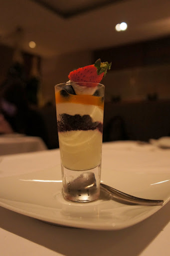 主要那層是cream cheese,其他兩層忘記是甚麼了(1.6~2顆星)。恩,這次沒有吃到5顆星的東西耶。沒吃到五顆星的東西有點失落感,不知道是因為第二次來這裡所以味蕾比較沒有驚喜感還是因為主菜真的比較不優。上次 Birthday + Anniversary 在32行館吃的經驗太美好,這次反而沒有吃到讓人完全驚喜的東西。重點是主菜竟然都沒有達到四顆星以上,所以感覺就弱掉了。另外就是,這頓晚餐的後座力真的很強,我吃完之後飽到兩三個小時後,上床睡覺的時候都還覺得好飽好飽。XD