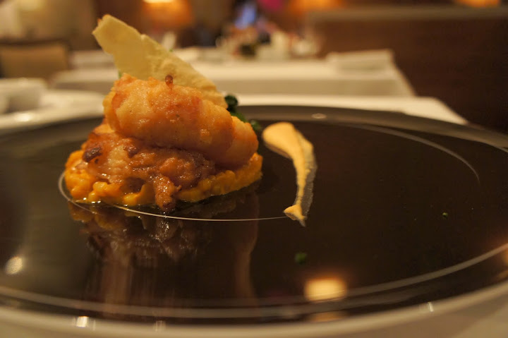味噌醬、干貝、蘆筍、咖哩泡沫。干貝搭上特製味噌醬 非常鮮甜可口 (4顆星)