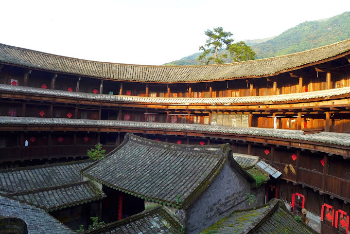 南溪土樓群,比較不那麼商業化。這裡的土樓和其他幾個商業化的土樓群相比起來,是十分安靜的,有些土樓裡面沒有看到人,只有雞走來走去。:P 我很喜歡安靜的南溪土樓群,讓人沉醉在古老建築的特殊氛圍中。