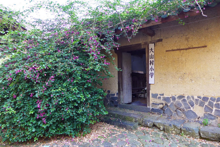 旁邊有一些低矮的建築,大山村小學並不是真的小學,是某個拍戲劇組用的景,現在裡面只剩一些雜物。
