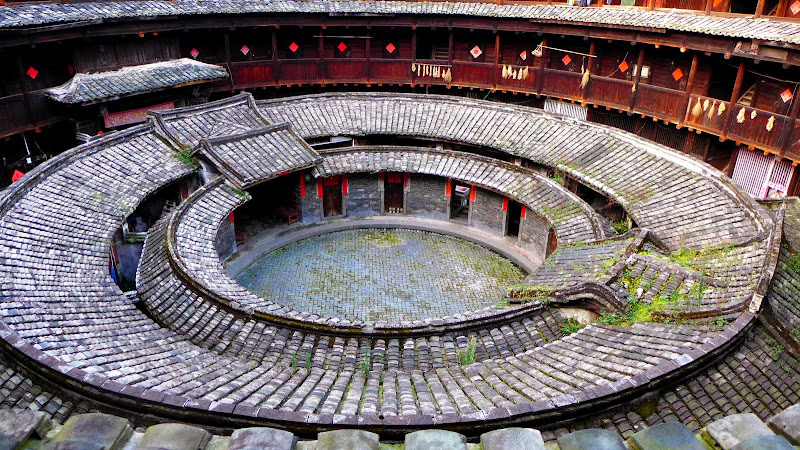 環極樓內外都是圓形的。站在中庭的回音點大聲說話或拍手,可以清楚聽到回音。