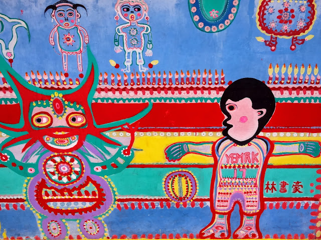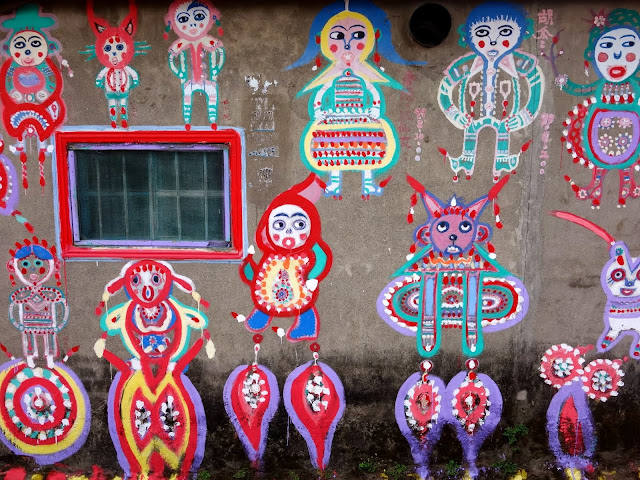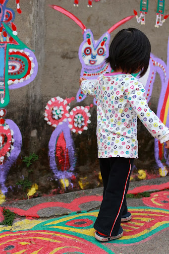 女兒指著牆上這張彩虹眷村的圖,說:”我要去那邊”