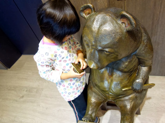 女兒一直試圖在看熊熊的手上拿的東西上面有甚麼 😛