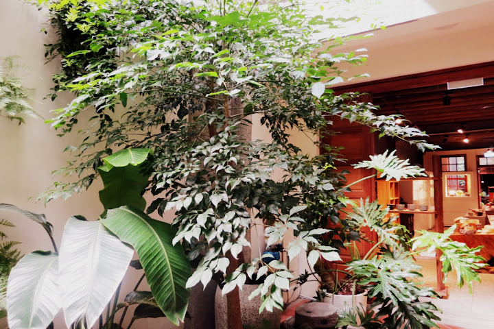 What I like most is that the interior patio is filled with beautiful plants, creating a fresh green space.