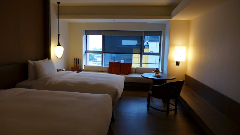 台南晶英的雙床房型。兩個床可以併在一起,睡兩大兩小都不是問題。可以在大床上滾來滾去。