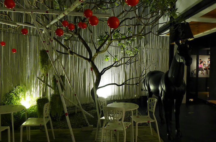 終於看到傳說中的moooi馬。可是晚上的時候這隻馬的燈罩裡竟然沒有放燈泡。不能亮。orz 我想要看這個燈亮的樣子啊! 就這樣一個不能亮細節讓感受差很多! (旅店回覆說是因為怕下雨危險才不讓她亮。 那不能晴天時讓他亮,氣象說會下雨時再把燈泡拿掉嗎@@?) (要求太多XD)