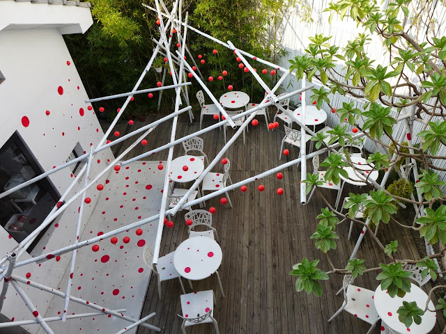 看到這間八又二分之一藝術旅店的報導之後,一直很想到訪。終於又安排了台南之行。介紹上寫: 7個房間+1個工作室+半個咖啡廚房 = 7+1+1/2 = 8又二分之一。是個由美軍宿舍改建的美麗地方。實際上住過之後,雖然整體上感覺還ok,不過,我必須要說,這是一間很視覺系的旅店,並不是很舒適。而且有許多小細節可以改進。 (我本來期待著像hotel Anteroom Kyoto一樣 住在gallery裡也很舒適呢)