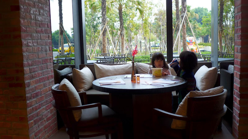 兩個小朋友跑去坐在窗邊的位置