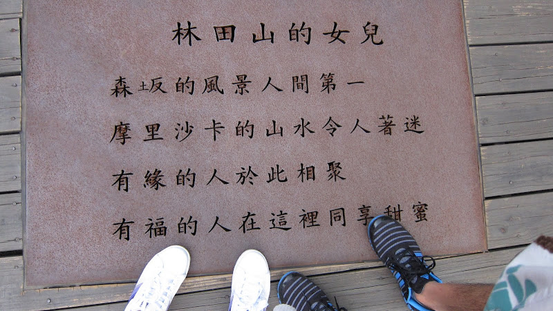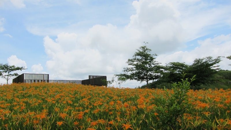 看完日出在回床上瞇一下,早上大約七點多就起床了。吃完早餐,繼續往南,要去看金針花,花季是八到九月。途中經過了北回歸線。本來是想說要去赤科山的。不過後來發現六十石山並沒有比較遠。就更改了行程。走玉長公路過來,回到台9線,然後GPS幫我們指了一條”阿眉溪鄉道”,這條產業道路路真的有夠小,然後又陡。小polo爬起來很吃力啊。 越爬越高,老公說,沒走錯嗎? 我們到底是要去哪裡? 這麼偏僻。我說,不可能啊,六十石山是超大的景點耶,這不可能是上六十石山的主要道路吧。而且沿途也沒甚麼指標,前兩天晚上才聽到新聞上報導,有人因為GPS帶到偏僻的產業道路,差點開落山谷的新聞。現在我們完全相信這新聞是真的。我說: 我們下山時走別的路吧。
