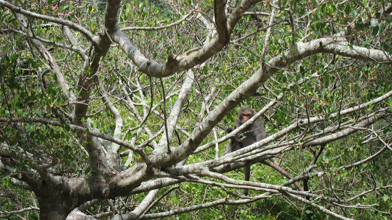 走出禮拜堂,竟然看到一隻猴子,但牠蠻怕人的,拍了一張牠就逃走了。
