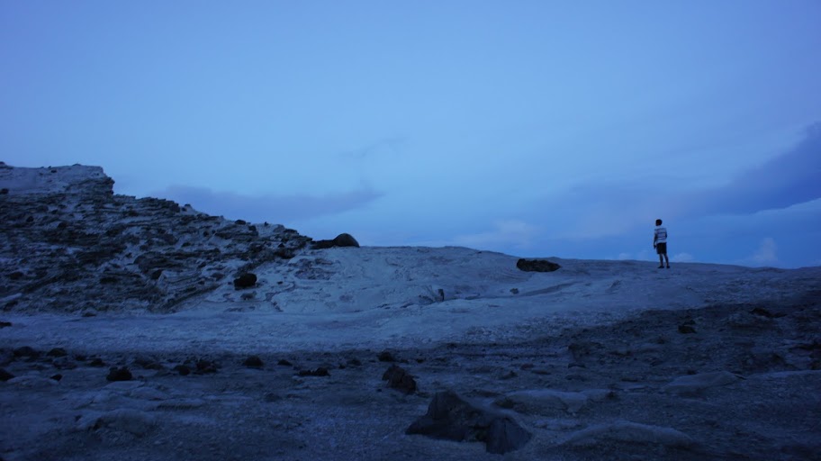 因為冷氣太大聲,床不太好睡,壁虎又叫的超級大聲,所以睡得不太好。看完星星躺回床上,迷迷糊糊睡到凌晨,聽到窗外鳥開始叫,撥開床頭的簾子往外望,看到超級夢幻的顏色,立刻醒了,起床看日出。而前方半面山的岩石上也可以看到三五個看日出的人。
