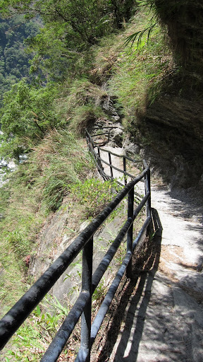 綠水合流步道的highlight應該就是這個斷崖地形了吧,是合歡越嶺古道的一部分,經過斷崖上的通道,如果不是有欄杆的話真的會腿軟。加裝了欄杆,少了驚險刺激的感覺,但可以放心的欣賞壯麗的風景。