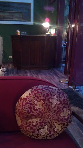 小朋友對左下角落那隻店貓很有興趣,