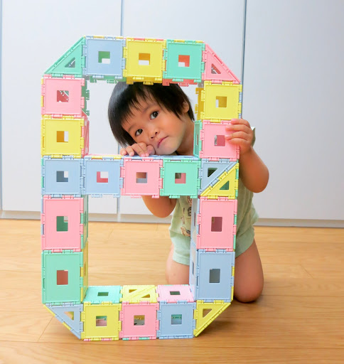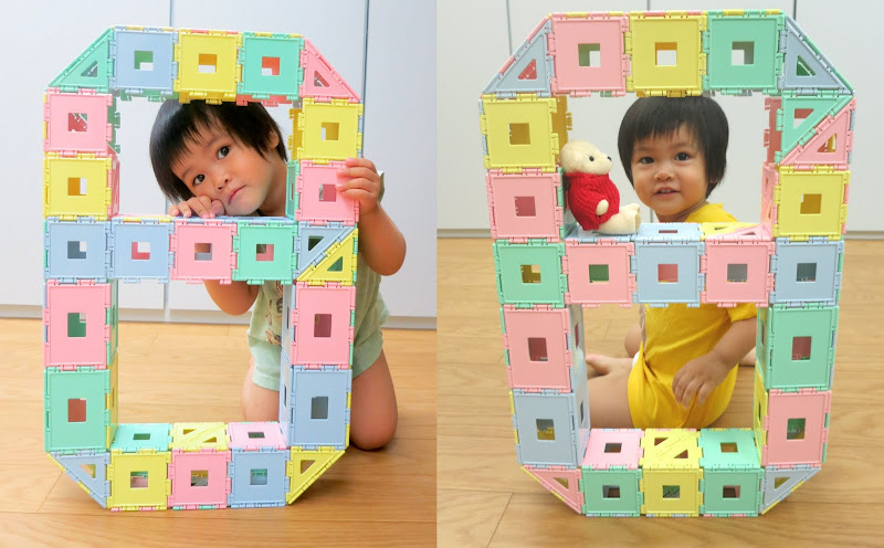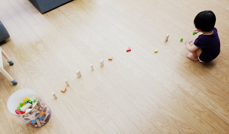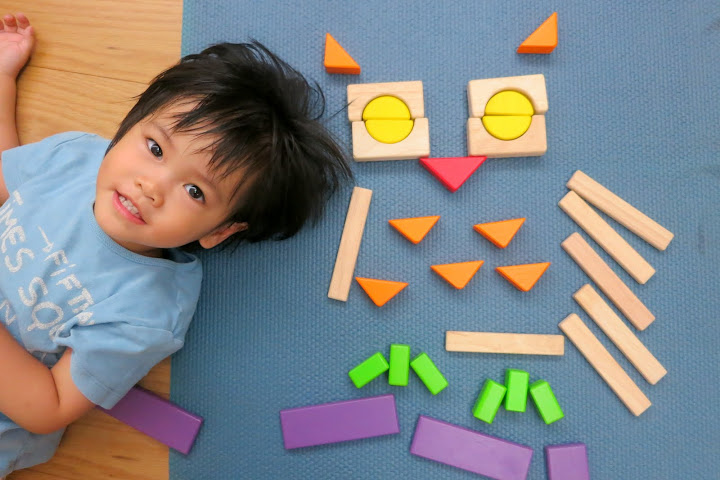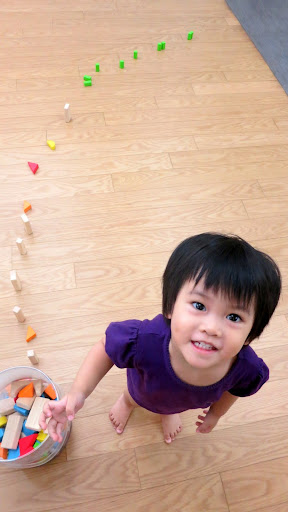 排完了積木之後還很配合地乖乖坐好讓我拍照 😛