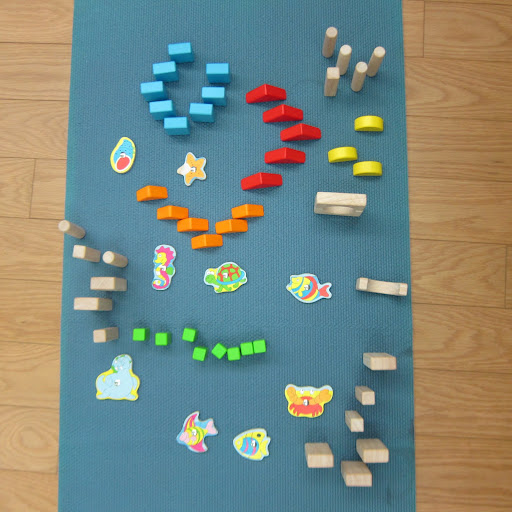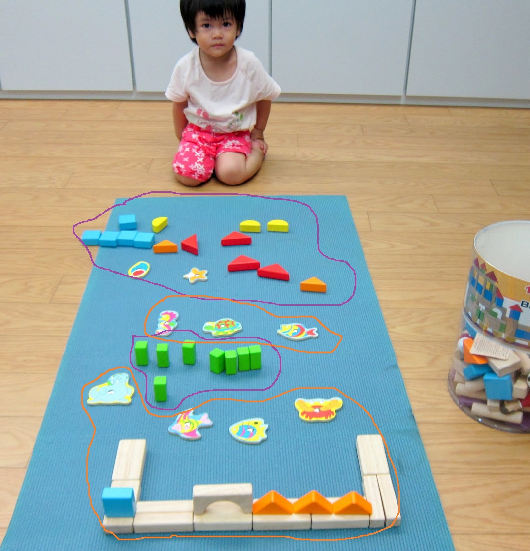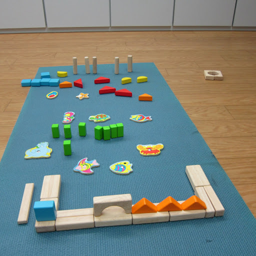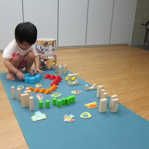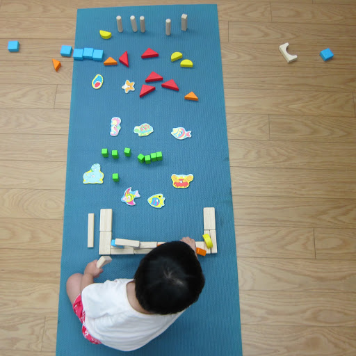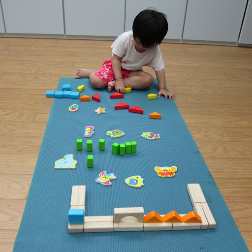 將將! 上半部新加的東西都是寶寶排的喔 (右上角墊子外面那兩個合起來的拱型,讓我很驚訝呢)