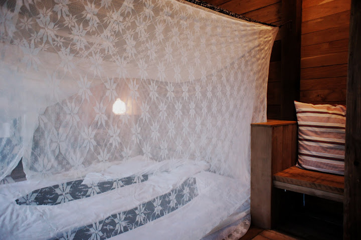 睡得很好。有蚊帳,就是令人特別安心。棉被和床也超舒服。