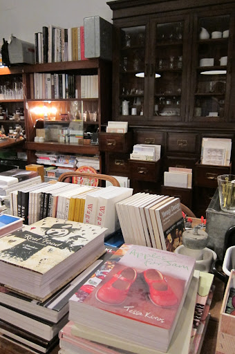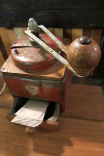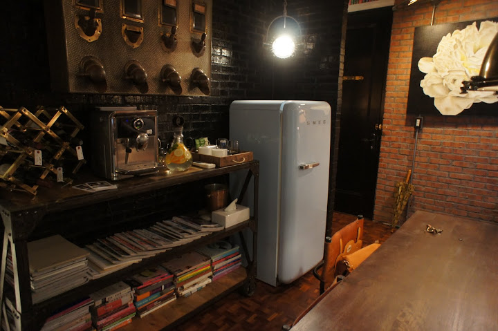 可愛的義大利SMEG冰箱、咖啡機、上方是以前咖啡店裡用來放咖啡豆的機器吧 😛