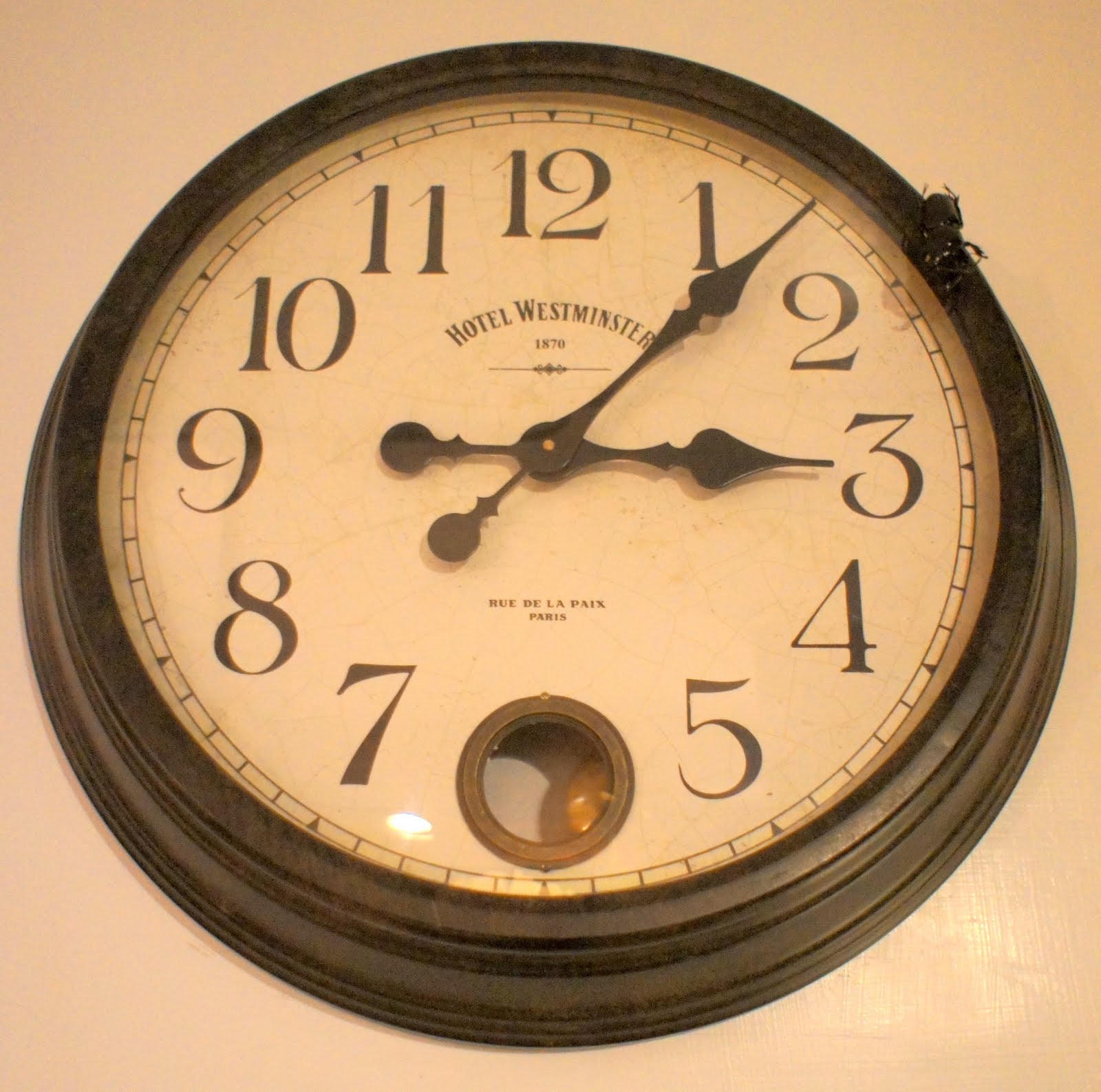 我一直到晚上,才發現鐘的右上方有一隻甲蟲,我被牠嚇了好大一跳! XD