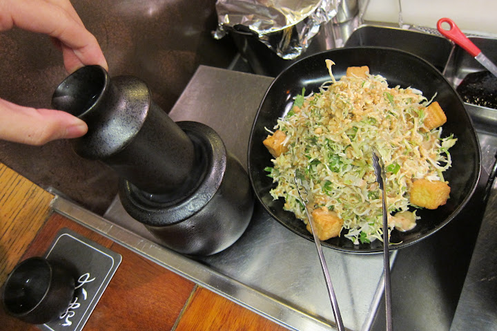 老公說好吃,我知道他應該會喜歡 : )。可是坐吧台離爐火好近喔。煙好大,不太舒服。而且炭火一直噴灰,我一整個覺得我像坐在火山旁邊,然後火山灰會噴到我的盤子上、杯子裡、衣服上~~ XD (漲價了cp比也不高,而且服務人員烤的 沒有上次YS烤得好吃啦!!) (正當我暗自慶幸還好沒有帶爸媽來,因為坐吧台不舒服又有煙和灰,結果打電話去問她們吃得怎麼樣時,就聽到她們對好樣餐廳的不滿和抱怨 Orz