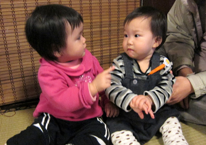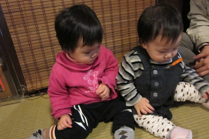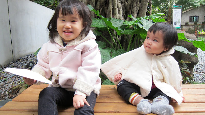 兩個年紀相近的小朋友坐在一起,連髮型都很像 😛