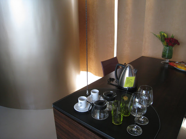 浮線發想之島,是一個可以好好寵愛自己的島嶼。踏上這個島嶼開始,島上的黑衣人,就讓我們感到完全地受寵。甚至,在旅行之前,就先寄了明信片來,然後email問我們喜歡甚麼、不喜歡甚麼。滿室的鮮花,都是為我們準備的。那麼有趣那麼吸引人的建築,可以讓我們探索。腳踏車,也隨時準備好讓我們騎車出遊。接著就是非常美味的每一餐: 下午茶、晚餐、隔日的早餐、甚至還有午餐。