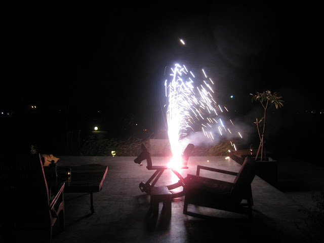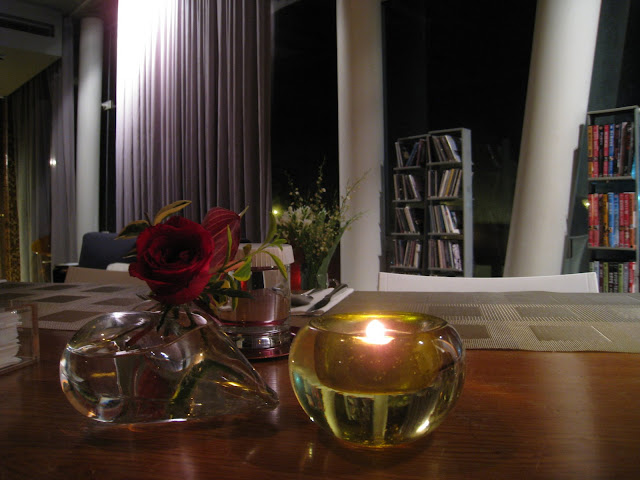 貼心的舉動,還包括晚餐後準備的仙女棒和小花火。以及,我婆婆稱讚她們的一個心型小花器漂亮,黑衣人就送了一個花器給她。甚至甚至,寵愛的程度,在過了一年半之後,我坐月子的時候,收到了她們寄來的獨立森林的下午茶招待券。