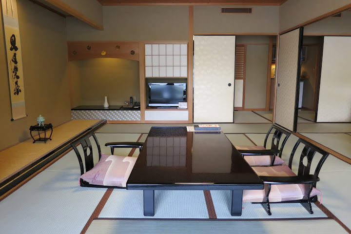 房間: 純和風客室12帖+8帖,每個房間都有面湖的窗戶,這間有兩面大窗戶。