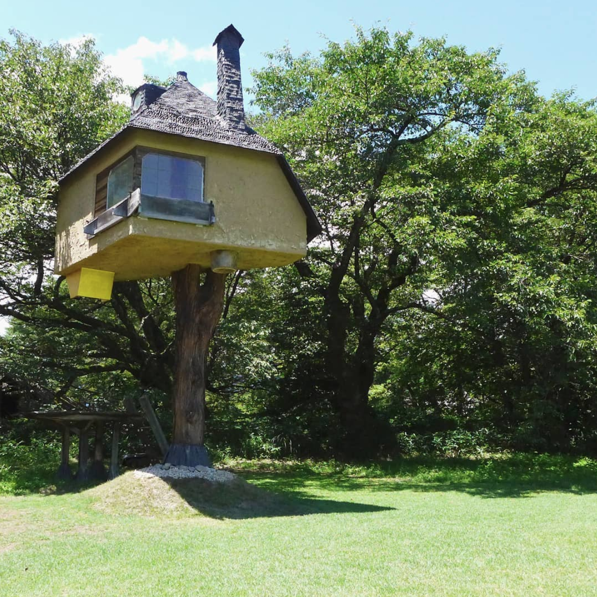 由建築歷史學家藤森照信設計的茶室,於 2006 年完工。 在清春藝術村種植的 80 年樹齡的柏樹被用來支撐茶室。 高度離地約4米,內部約1.7坪。