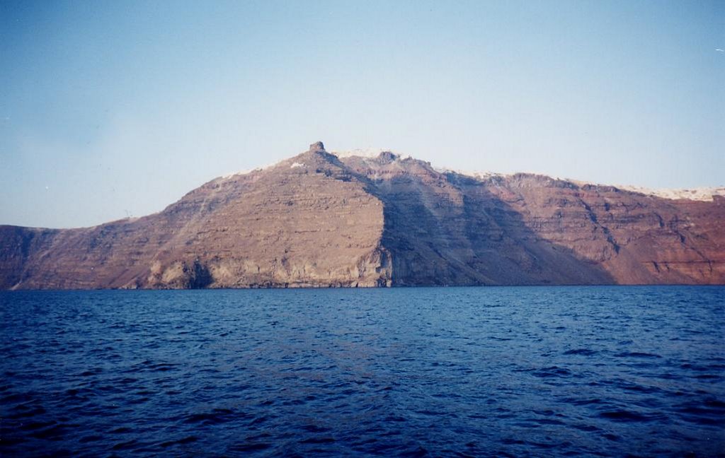 飛過一個新月形狀的小島,有著關於火山爆發,失落的世界的迷人傳說