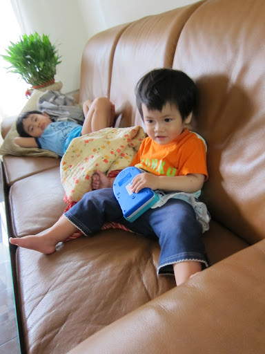 之前7-11的踢踏舞公仔換了電池給她玩。她很愛。會一直去按讓公仔跳舞,聽著音樂自己也搖晃起身體來。最近她還學會把兩個公仔串聯組在一起,組成功了,就幫自己拍拍手。