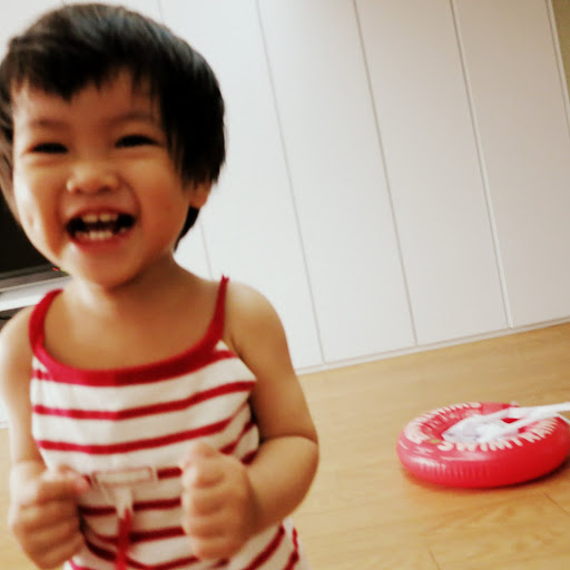 幾天不見,忽然會說好多話: 搖搖搖,好(好啊,好哇),走(走走走),貼,拿,這個,魚,藥藥,爬,嬤 (阿嬤),姨,高,怕怕。當然還有很多奇妙的火星話句子,不仔細聽還會以為是地球話 XD。