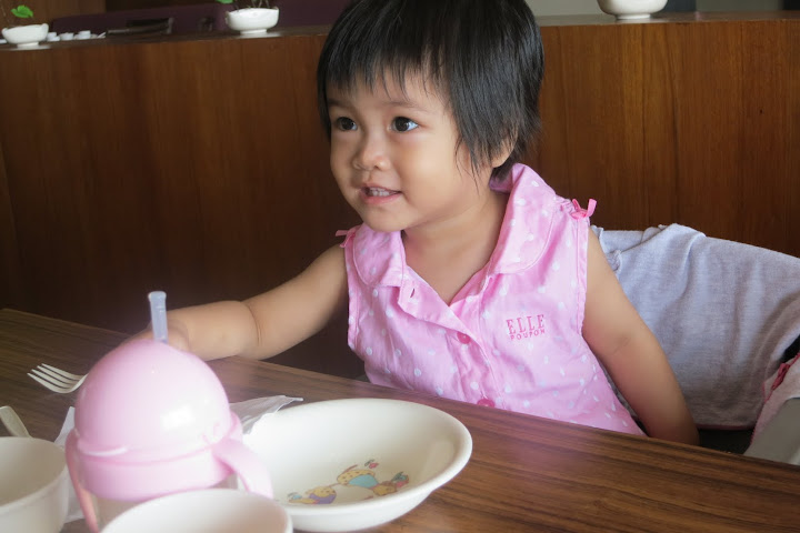 坐在小朋友旁邊果然不一樣,真的超好餵。不管餵她吃甚麼都不囉嗦很阿莎力的吃下去。