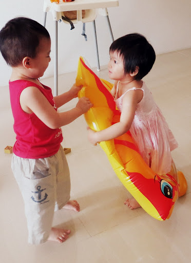 拼了一個翹翹板給她的布娃娃坐,結果她玩一玩還試圖把布娃娃拿起來想要自己坐 XD