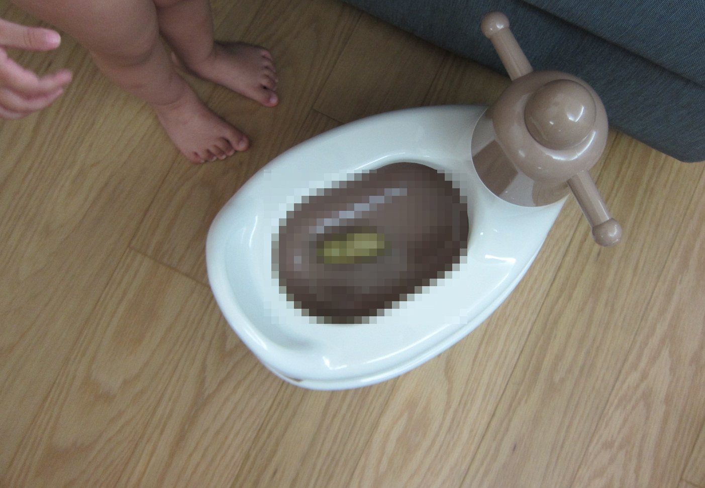 在家裡也成功地便在小馬桶裡了。第一次接到便便的感覺很興奮耶,還拍下來留念,不過為了預防有人吃飯吃到一半想吐,打了馬賽克 😛