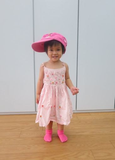 學會這些英文的代價就是,她現在會一上車就一直repeat: “Hello,聽“,一直要求聽cd裡的同一首Hello歌。也會經常在家裡跳針般地說:”Hello,看,兔兔,娃娃” ,要求要看那個dvd。 (傷腦筋orz)