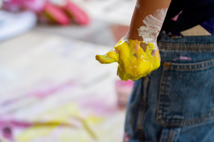 女兒忽然舉著滿手顏料問我:”我可以抹臉嗎?”