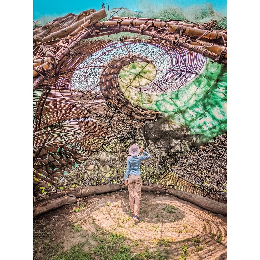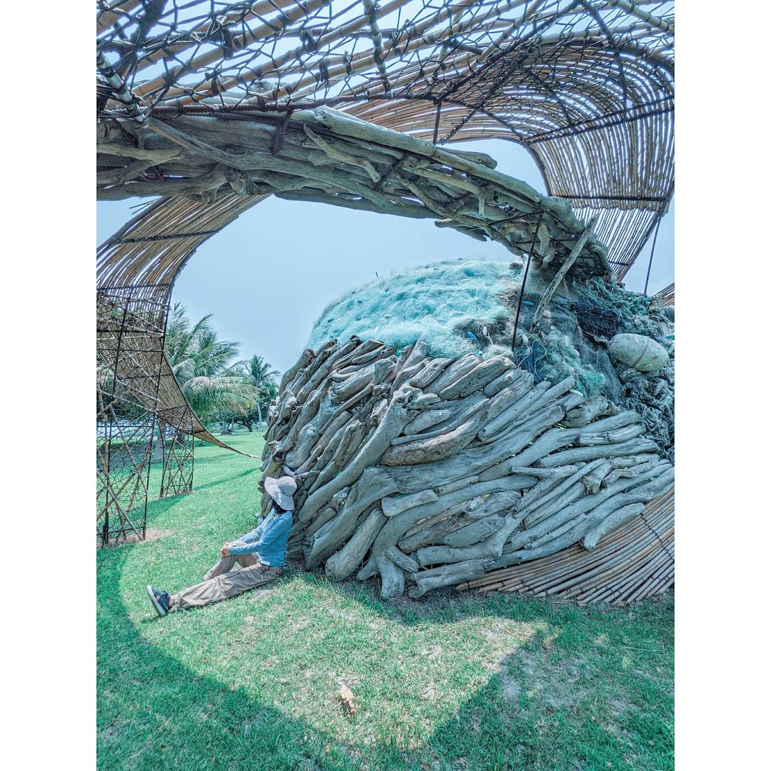 將有著山與海屬性的竹子與漂流木結合著海洋廢棄物聚合在一起,表現著自然本身的流動狀態,創造一個有著颱風形式的棲息地,它也是人在自然之間的思索空間。