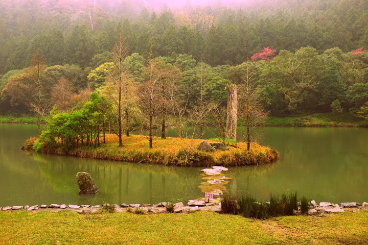 明池森林四季都有迷人的風景,尤其是適合夏季避暑的好地方。被群山和森林環繞,山嵐繚繞的高山湖泊明池,景致如夢似幻,池中安排的枯木形成獨特風景更具詩意。