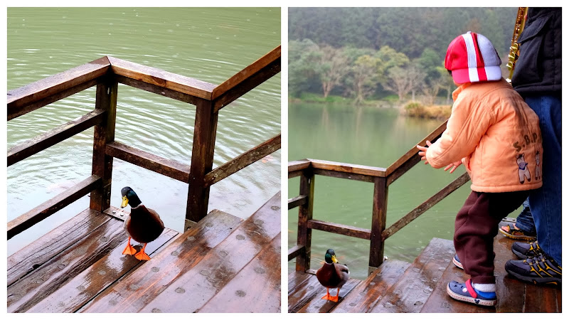 連鴨子都走到木板上,歪著頭聽歌。(好可愛喔!)