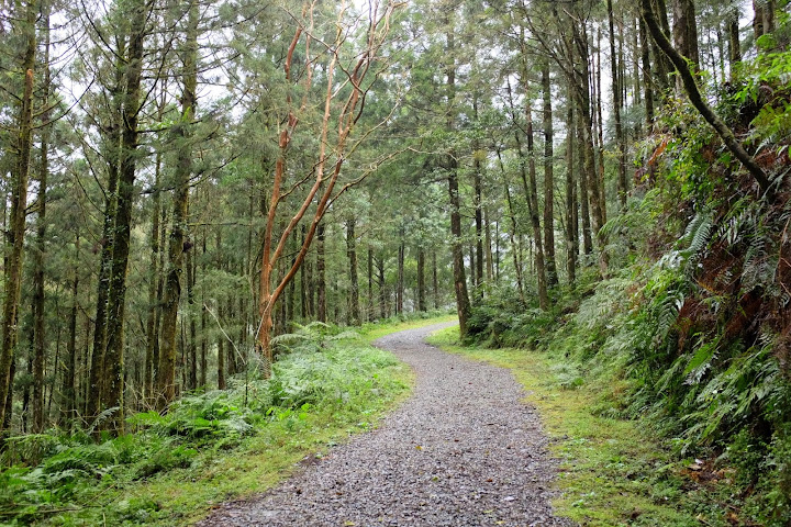 第二天早上,我們走小木屋後方的森林步道,繞到明池遊樂區。