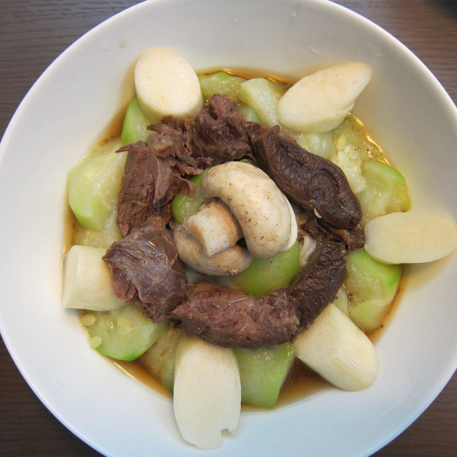 謎樣的絲瓜麵 (+清燉牛肉,筊白筍,蘑菇) (有很奇怪嗎 XD)